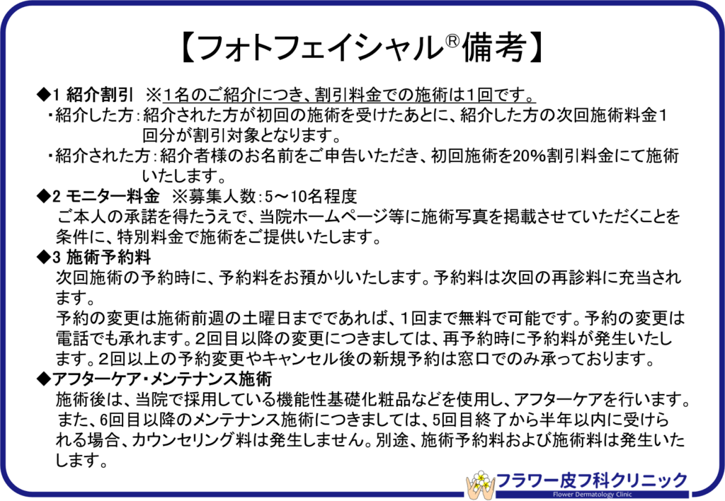現在、フォトフェイシャル®は 水曜日午前中の完全予約制 で実施を予定しております。