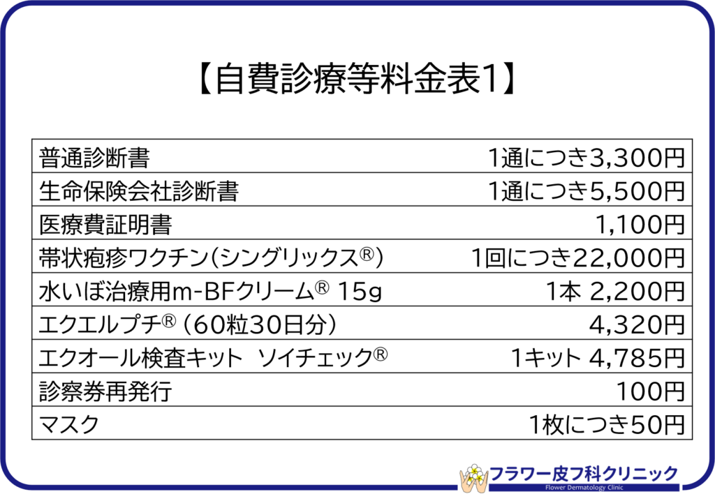取り扱いのある自費診療について、以下に掲載します。