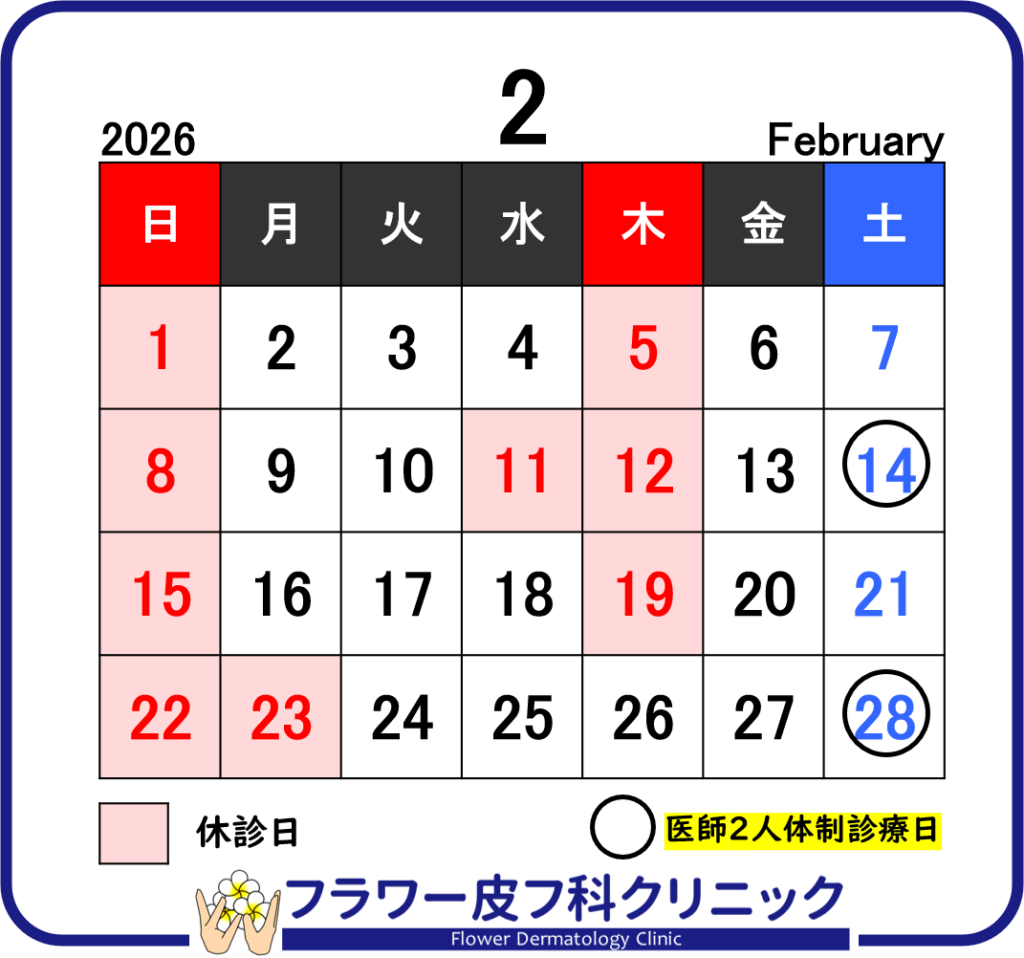 - 木・日・祝日は休診日です。(臨時で診療する場合は、診療カレンダーに事前に記載します。)